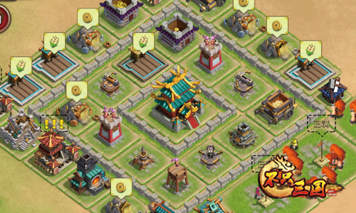 自由,绝对是《不只三国》中的一大特色,玩家在游戏中可以随心所欲地建设自己的城池。当然,你若想变强大,也可以认真考虑考虑。兵营、招贤馆等建筑物占地都是3*3的面积,主城和练兵场则是4*4的占地。箭塔防御半径是10格,这个半径内能放多少良田?如果遇到多方进攻,要放多少箭塔?火力配置是否合理,主城位置是否安全,良田收入是否稳定?都需要玩家发挥自己的奇思妙想,步步为营的去设计。