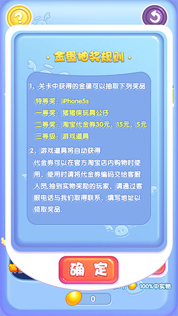 还记得“非常6+1”里面金花四溅,梦想砸出来奇迹吗?而如今,同样的惊喜在11Game《猪猪侠之勇闯巨人岛》的特色玩法中经典再现。在故事模式15关以后开启金蛋抽奖功能,小伙伴们可通过剧情通关不断获得大量的金蛋,每一颗金蛋内就有可能是5元、15元、30元的淘宝代金券,猪猪侠玩具公仔、甚至是触手可及的iphone5S。动画官方天猫旗舰店正品兑换,真正的金花四溅,大奖砸出来,你心动了吗?