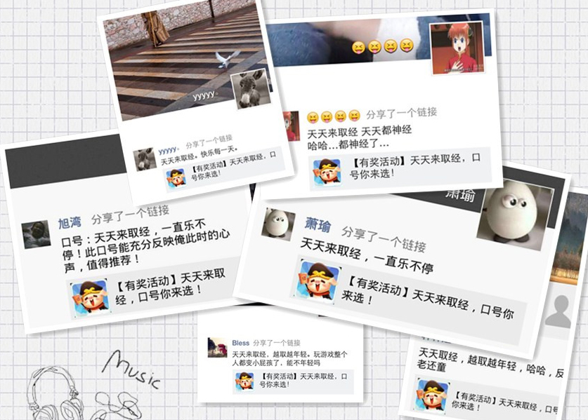 近日,众玩家为《天天来取经》评出爆笑口号,这些口号集中体现《天天来取经》玩友的心声,更充分展示了《天天来取经》的神~奇~疗~效~!