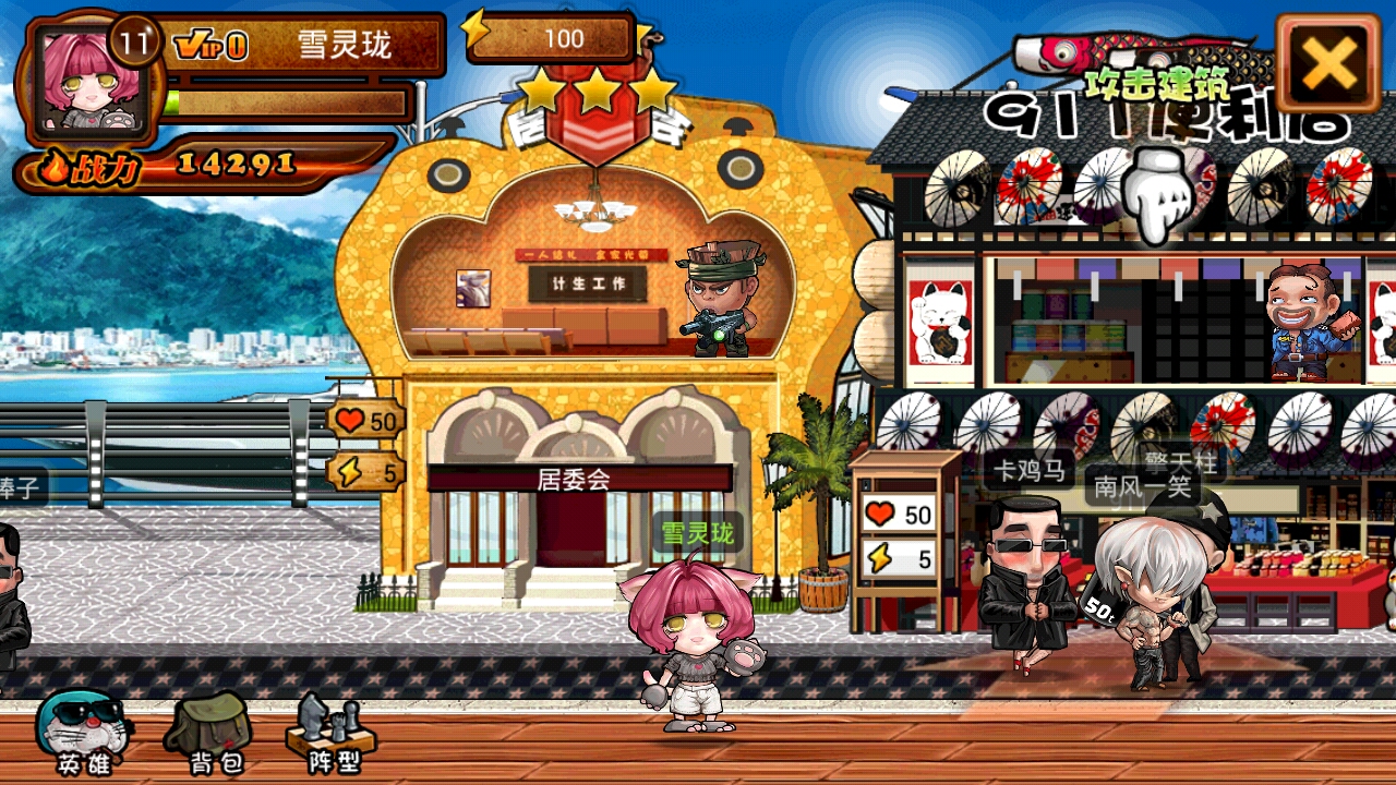 现在很多游戏都在讲创新,卡牌的创新方向有很多,卡牌题材的创新,卡牌操作的创新,剧情体验的创新,游戏玩法的创新等。《毁童年》的特色系统不仅新颖而且有趣,玩家到了一定等级就会解锁通缉玩法。想要惩罚那些令人不爽的坏蛋吗?到大通缉酒吧接取通缉任务,消灭被通缉的坏蛋还能获得强力技能,炼化石和大量金币;队伍不够强?来非诚勿扰婚介所点选漂亮小姐和帅气哥哥出台协助战斗吧,没错是出台,貌似出台的潜规则是这样的价钱和相貌战力成正比的(肿么觉得这婚介所像拉皮的);还有一种超越所有卡牌的玩法——街道养成,在自家街道建造休闲娱乐建筑,酒吧、旅馆、洗头房,再买一辆拉风的座驾就可以开门接客赚取卡牌碎片和宝石啦,来光顾的可都是鼎鼎大名的动漫人物喔!