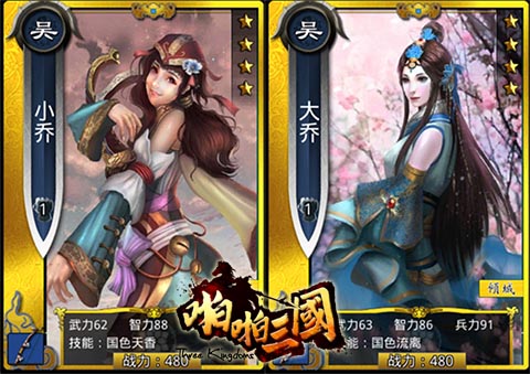江南二乔或许在漫长的历史长河中名气不及貂蝉,但是自幼生长于江南水乡的二乔,完美的继承了江南美女水灵的特点,所以将她们列为三国美女的No.2也是理所应当。历史上大乔嫁给了当年的江东小霸王孙策,小乔则嫁给了东吴大都督周瑜,更曾有传说曹操挥军南下意在二乔,江南二乔之美貌可见不凡。在《啪啪三国》中,江南二乔可以说是绝佳的辅助随从类卡牌,对两位美女的勾画上大乔温婉清秀,小乔俏皮可爱,既有天仙一般脱俗的相貌又有邻家女孩一般的接地气的感觉。两姐妹在联协时不仅互相可提供增益,此外还可以为周瑜和孙策提供增益。相比起貂蝉的美艳,也许江南二乔的气质会是万千男人的心头好。