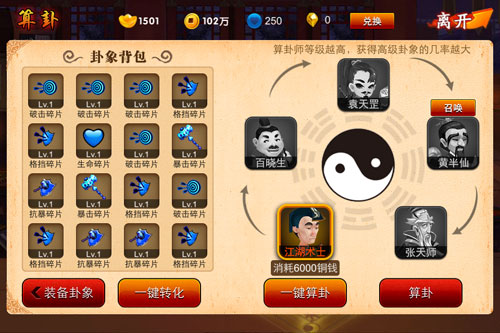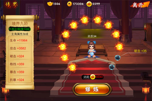 境界是《囧西游》境界系统中独有的一种资源。玩家可使用境界点在该系统中提高自身修为。主角属性将随着修炼过程逐渐增加,满值后可实现突破,达到全新的境界等级,与此同时,角色战力也将瞬间飞升。而卦象的装备与升级也是速升战力的途径之一,玩家可前往算卦系统一键算卦或参加与新版同步推出的游戏内限时活动,有机会获得乾坤碎片,转化即可换取升级所需的卦象经验,为角色属性加成。