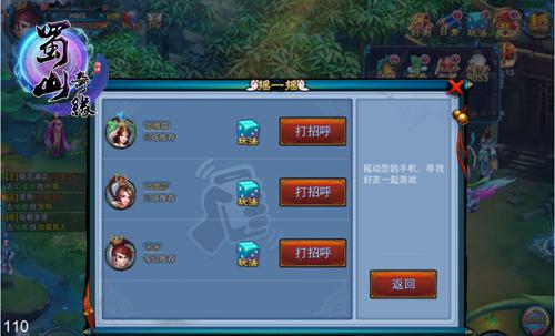 凡在游戏中达到40级的玩家,即可在主界面玩法中找到摇一摇功能。有点类似微信中的寻找附近好友。而在《蜀山奇缘》中,玩家通过这个功能寻找到的却是正在周围游戏的玩家。想要和他们打招呼添加好友或者一起进行有趣的小游戏,就看你的选择了!