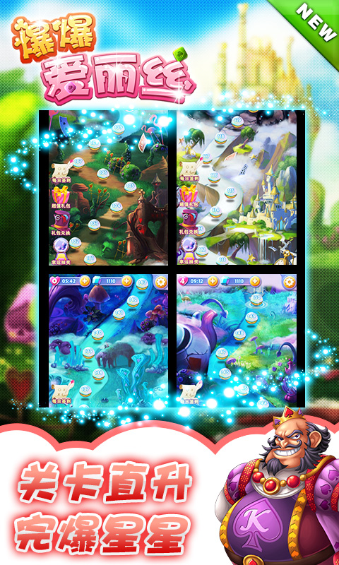 在爱丽丝、白兔先生、红桃皇后等熟悉的主角及剧情的指引下,你将在《爆爆爱丽丝》游戏中开启最梦幻的点消闯关!此外,《爆爆爱丽丝》浪漫七夕版还将带来更多全新关卡闯关、闯关模式、障碍元素,让你在与众不同的梦游仙境感受最畅爽的梦幻点消!更有机会在新奇的地下世界,开启最疯狂的探险!