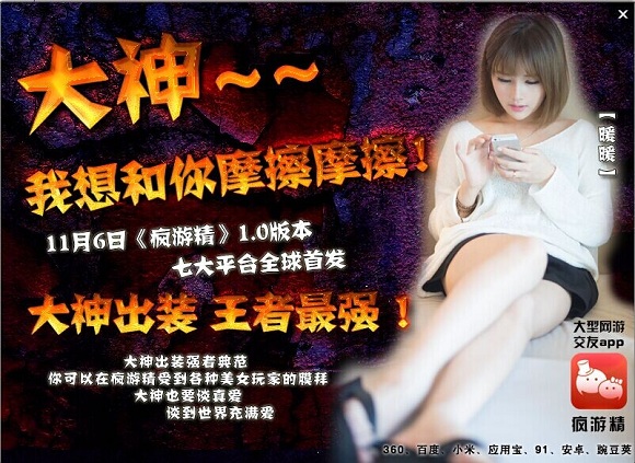 网游社交社区《疯游精》现已在360 、百度、 小米、 91 、安卓 、豌豆荚 、应用宝七大平台全球首发。