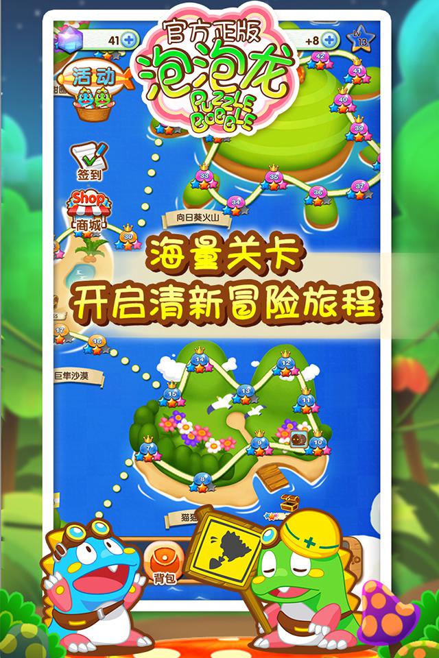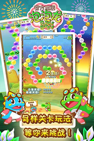 本作重新进行优化升级,将会以地图探索的模式进行,总共分为15大场景,每个场景6-15小关,难度由浅入深,但费时都不长,也不会太过折磨脑细胞。游戏的规则是抛出泡泡,连接三个或三个以上相同颜色的泡泡来获得分数,以取得胜利。解锁和掌握超级泡泡、泡泡补充剂、炸弹等多种道具可以更加完善游戏策略,提高游戏分数。关卡大多属于“灵机一动”便可泡泡出手的类型,不用费什么力气就过关了,有点意犹未尽的感觉?那就接着开始下一关吧!