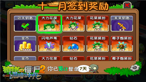 进入游戏,11月份连续两天签到就可以获得《植物大战僵尸2黑暗时代》专属植物大力花菜,坚持签到还可以夺取专属装扮和进阶机会!除此之外,潘妮宝箱限时免费开放,心仪植物随便抽!还有寒冰菇和花生射手大礼包限时热卖,进阶+装扮一步到位,快乐停不下来!现在前往各大媒体,还有新手礼包免费发放,赶紧行动吧!