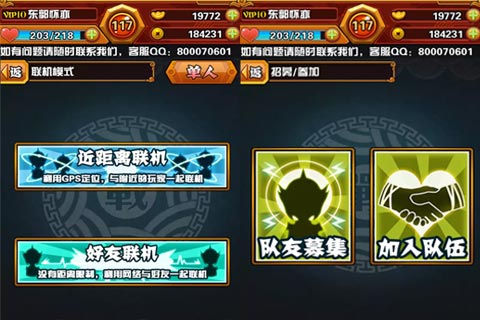 随着年龄的增长,我们需要花费在学业、工作、家庭上的时间越来越多,好朋友能一起欢聚的时间越来越少,真正无忧无虑的一起打游戏的时光越来越短暂,但真正的友谊是不会因此而淡化的。在《天天撞神将》中玩家们同样可以使用联机模式中的“好友联机”模式远程与小伙伴们进行实时联机,与“近距离联机”不同,需要玩家事先约好,通过网络同时进入组队。距离不再是问题,分享快乐,点燃热血,现在就要!