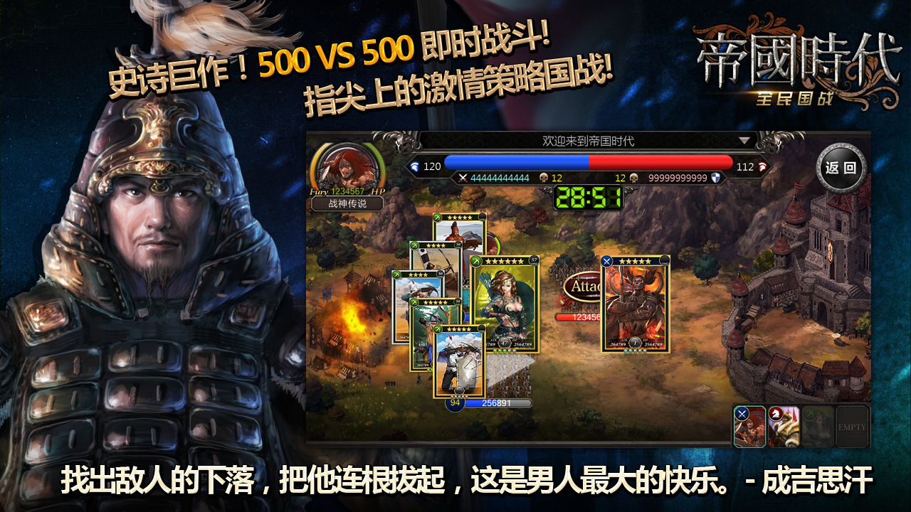 导 读: | 《帝国时代》国内第一款大型即时策略国战类游戏,加入了时下最流行的卡牌元素,以历史人物乱入为背景,让史诗英雄们汇聚一堂。圣女贞德VS列奥尼达! 成吉思汗VS凯撒大帝! 关羽 |