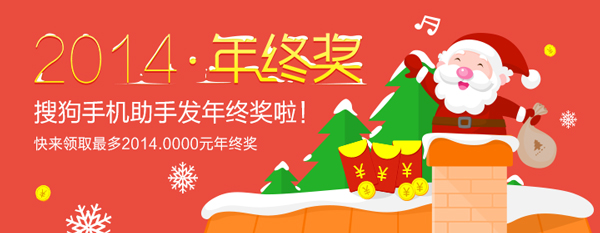 国内领先的手机应用发行平台:搜狗手机助手,在双蛋节可谓是不惜血本。与支付宝强强联手,推出了“人人都有年终奖”活动。参与活动的用户将有机会获得面额不等的支付宝现金红包。搜狗手机助手为此次活动预备了总价值为2014万元的红包。目前该活动在各类赚客分享群里已炸开了花,话题已延展到“如何利用规则多拿红包”。搜狗如此土豪的行为,真是令人刮目相看。