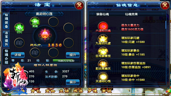 当《全民斩仙》玩到一定阶段后,便会遇到战斗力瓶颈,无法像前期那样大幅提升。这时仙友们可将注意力转移到法宝系统上。只要你运气好,手法对,法宝将能给战斗力带来一次质的提升。
