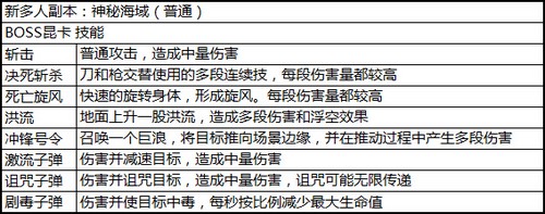 新增的第二个副本是神秘海域,限制等级60,而BOSS也是各位玩家比较熟悉的船长形象,不过他可不是新武神幽灵船长,而是比泰坦还要恐怖的海上魔王。昆卡的技能伤害很高,决死斩杀、死亡旋风、洪流、激流子弹等都会令玩家感到自身的脆弱。最令人头疼的是昆卡不但技能输出高,技能连续性也很高,再加上诅咒子弹的诅咒效果,让玩家欲哭无泪。诅咒效果还能无限传递,玩家只能祈祷不要碰到一个坑爹队友了。
