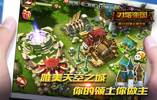 如果手游光是打打杀杀,时间长了未免厌倦,《刀塔帝国》的城建系统就是喧嚣世界里面的一块净土。托Unity3D引擎的福,主城场景在50万面模型支持下,《刀塔帝国》的建筑表现毫不逊色于模拟建设游戏。