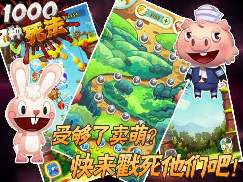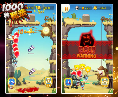 作为一款休闲手机游戏,《1000种死法》剧情其实非常简单,即入侵者与守卫者殊死战斗的故事,玩家作为守卫者如何勇猛反击、杀死敌人以及灵巧自保是这款游戏最大的游戏性。然如此血腥刺激的一款游戏,却配以萌系画风,游戏中不管是入侵者还是守卫者的设计都非常的可爱、呆萌,相信大多数人咋看一眼定会将其自动归入无害、治愈、小白兔游戏之列,but,一切都是假象啊!鲜血分分钟迸溅满屏,大家一定要做好心理准备哦。