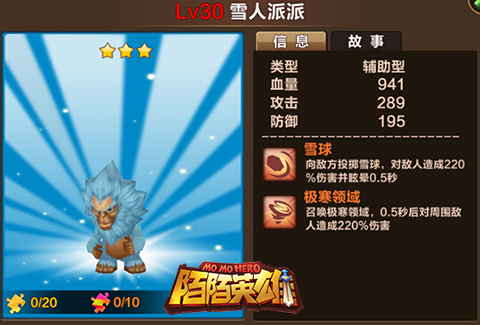 雪人派派对于召唤师来说是前期不可多得的好帮手,他眩晕技能以及范围攻击技能都可以说是非常强力的特技。但是作为一个3星的英雄,它的弱点就是在后期无法拥有更为强大的能力,只能渐渐退居二线,但是总体来说还是非常强的一个英雄。