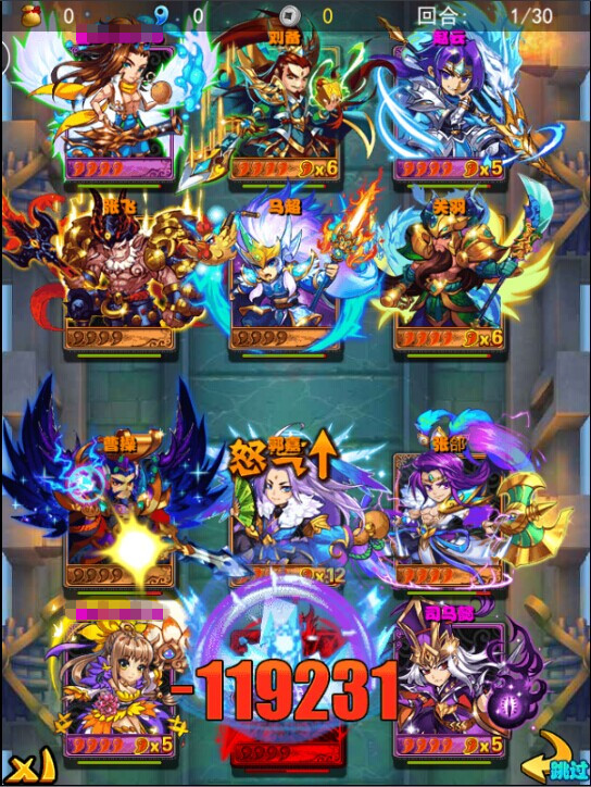 这分别是第三下关羽、赵云怒气所打出的伤害,没爆,也还可以哈!如果要是跟夏侯那样高格挡就更无敌了!哈哈!