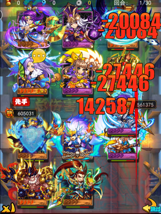 可以看到在首次受到伤害的时候,警戒天赋完美触发,导致关羽打不出伤害来。