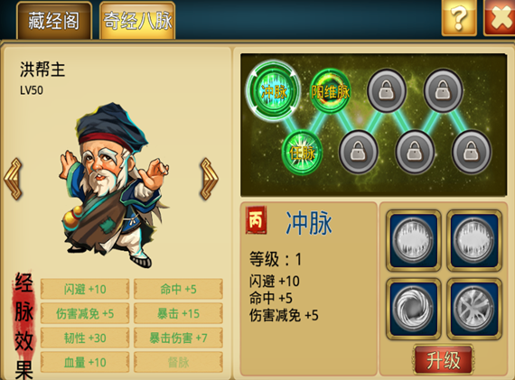“奇经八脉”是《幻想武侠》的独具特色的玩法,进入“藏进阁”系统就可以看到奇经八脉。当门派等级达到17级时,会开放藏经阁系统。