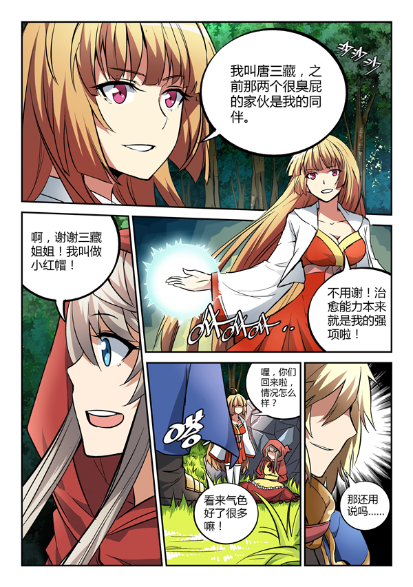本次更新的是《守护之光》漫画第二章,分为上下两部,共16页(一下子更新这么多,看着好过瘾的感觉,我会告诉你们吗?)。故事紧承第一章,小红帽和火柴女孩临危之时被黑太子英灵和兰斯洛特搭救,结果无意中发现了小红帽的“守护者之匙”,正在大家高兴的时候,情势却急转直下,发现了暗之影入侵的线索,只是这次并不是用耍酷的方式将小怪们击退那么简单了。到底是怎么一回事呢?还是玩家们自己来看吧,这里先给大家展示几张。