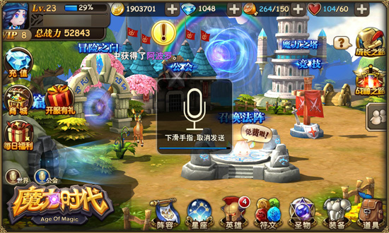 《魔力时代》是由广州新游运营的一款以屠魔冒险为主大型手游巨作。殿堂级精细3D画面带来影院级别视听震撼感受!实时战斗视角随心转换,独创符文特技让你瞬间逆袭做大英雄,公会航海种植全民互动,十万个冷笑话声优倾情献声,英雄多层羁绊打造个性团队,随时随地让你尽享全方位激爽战斗体验。