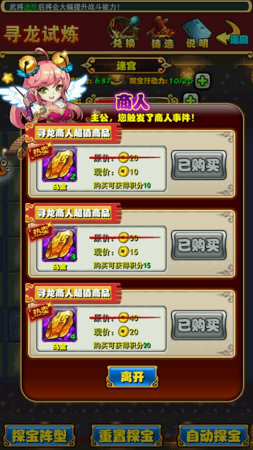 在闯关之前,我姑且命名为走格子。走格子会遇到商人。如图所示。