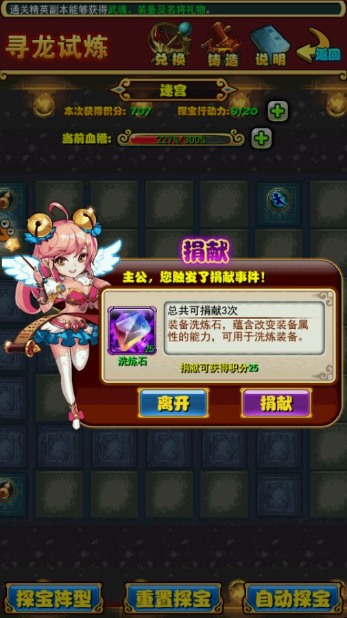走格子也会遇到捐献。随机捐献材料获得积分。最多捐5次。每次捐献的材料等差数列增长。