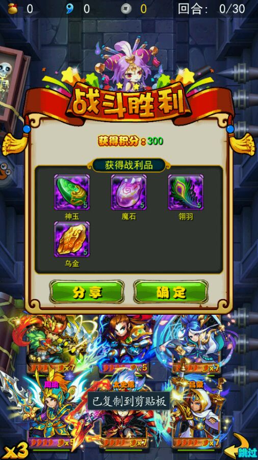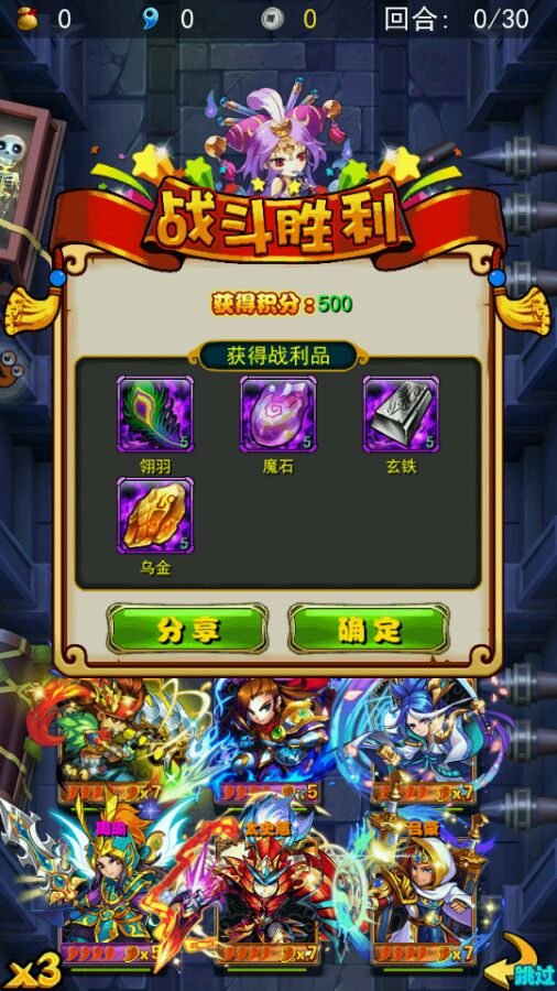 71万的猪哥亮,不减员通关。看来试炼的战力严重虚!各种虚胖啊。通关奖励如图。积分500,材料随机20。