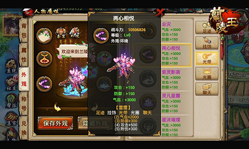 人靠衣装马靠鞍,作为战神的你岂能没有炫酷的装备呢。新版将上线七个外观套装组合将全面打造战神风范,套装还可以为玩家提供不同的属性加成!每个外观套装都由不同的几个外观组成(每个部位一件),最多由五件组成。《兰陵王》官方团队根据玩家的反馈对游戏的部分玩法内容进行了优化,2015新年新气象,飞行神器亮瞎眼,帮派逆袭等你加入!