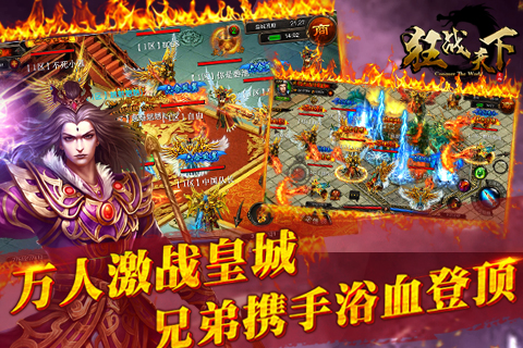 《狂战天下》重现人人身披战甲,尽情厮杀,不死不休厮杀到底的火爆战斗世界:金光闪耀的神兵利器,炫酷多彩的兽神羽翼,闪亮抢眼的技能特效,勇敢无畏的勇士勋章,酣畅淋漓的摇杆操作与滑动锁定,声势浩大的万人城战,以及激情澎湃的武林争霸,点燃了万千男儿沉寂已久的激情!战斗一触即发,罪恶潜伏在每一个角落,整个大陆,无处不是刀光剑影,血溅三步!