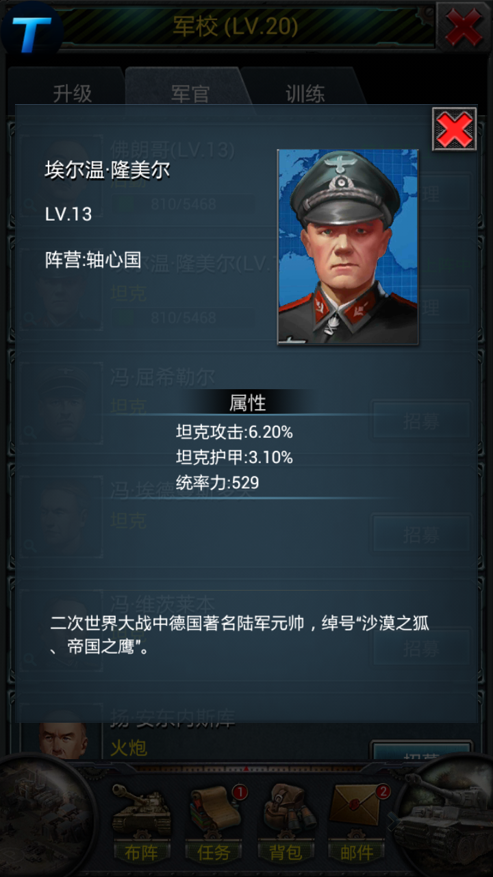 除此之外,玩家也可以与不同阵营、持有不同理念的玩家对抗,在不断的PVP战斗过程中,玩家可以获得二战历史中立下赫赫战功的历史名将,通过他们在战争中不同的战略战术思想和独特指挥技巧并搭配大家熟知的二战知名兵种,让玩家亲身体会率领陆空结合的机械化部队进行战斗的完美感觉。