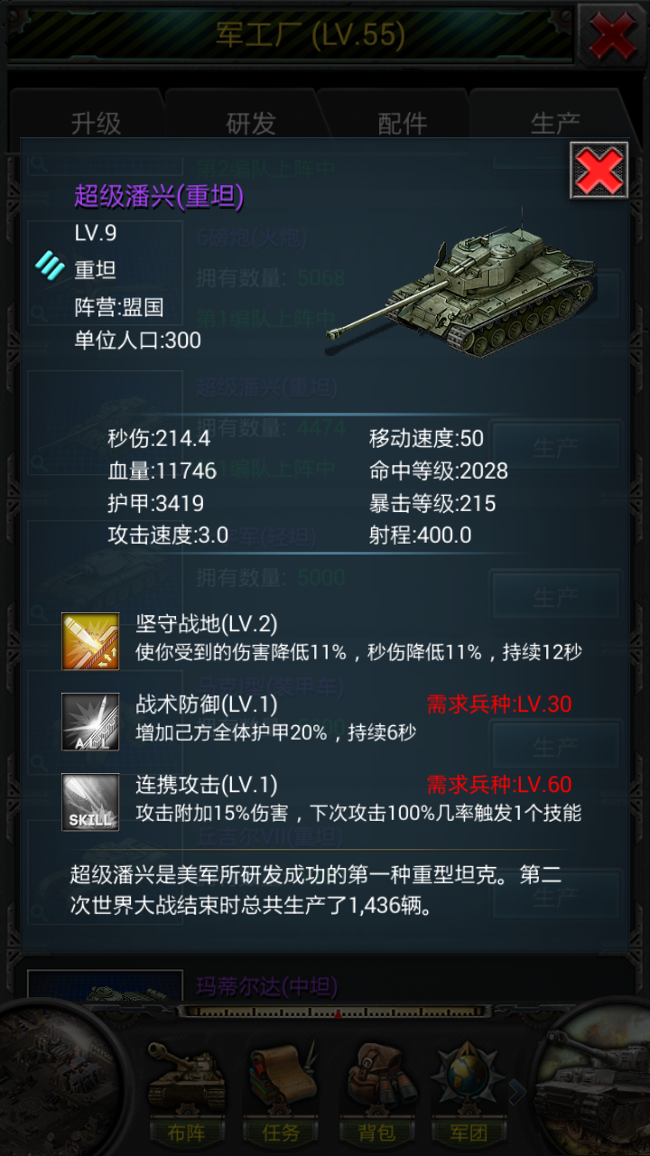 《坦克狂怒》真实还原了二战期间发生在欧洲战场上,18个参战国的人与事。玩家扮演一名新晋指挥官,通过真实的战役副本、世界争霸战和登陆战等三种游戏模式,可以在对战中获得军官卡牌碎片,招募人们耳熟能详的巴顿、蒙哥马利、麦克阿瑟、隆美尔、海德里希等二战名将。