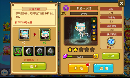 除此之外,《欧巴带我去冒险》“伊娃”初始是2星英雄,等级成长为7.9,攻速1.8/S,基础属性在众英雄里面算中规中矩,但凭借其“灭龙”和“克制大型BOSS”的设定特点,在团队中有着不可动摇的地位。