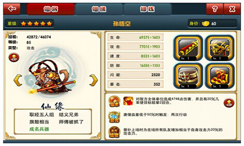 《萌仙传》“仙将”拥有越高星阶其“战魂”能力的增幅就会越大。星阶为“5”的仙将能给在场所有队友,增加自身属性20%的加成,当之无愧逆天的存在,即使吊丝阵容也能一下子变身为高富帅。