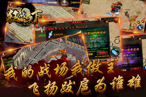 战,战天下!《狂战天下》重现了人人身披战甲,尽情厮杀,奋勇杀敌的情景。丰富多彩的玩法系统,阵营战,神识之塔,三足鼎立,BOSS挑战,五行轮回等等。各种玩法让你根本停不下来。绚丽多彩的翅膀、勇者无畏的勋章、气势逼人的坐骑更是让你爱不释手。