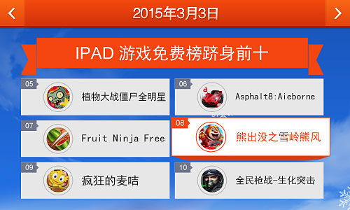 2015年3月:荣登Apple store游戏实时排行榜 新版推出