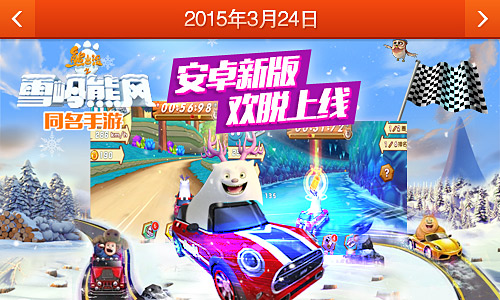3月20日,91wan熊出没之雪岭熊风紧随市场需求,宣布版本更新。新版游戏中植入深受Grace及影迷喜爱的角色雪熊(昵称白团子)以及改编自电影经典场景的新地图“奇幻之旅”。