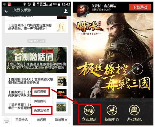 即使错过了上述所有活动,玩家也仍然有机会获得激活码。玩家只需关注《关云长》手游官方微信、回复“我要激活码”,QQ群的玩家关注活动公告,即有机会实时抢激活码。搜索公众号“关云长手游”或关注官方QQ群(424149850),官方微信将于5月13日、14日、15日每天下午2点开启限时抢码活动。(具体活动详情敬请关注微信公告)。