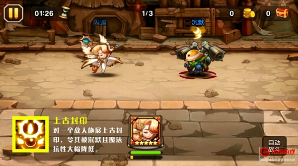 三技能“震荡光弹”,输出兼控制,对一定范围内造成魔法伤害的同时令敌人减速。天怒法师开场时即对敌人施放上古封印,沉默敌人,同时魔抗降低。