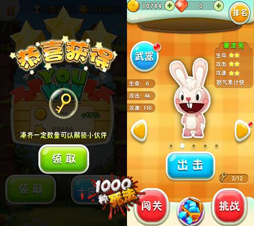 虽然《1000种死法》、以血腥击杀的重口味玩法为主,但是对于新手玩家来说,游戏还是非常滴仁慈。闯关模式是玩家掘金的重要战场,只要通过关卡,就能获得金币奖励,为了照顾新手玩家,游戏前部分关卡难度都相对温和,一般玩家都可以顺利通关,载金而归,建议玩家获得金币后马上去升级武器,加大攻击力再战。