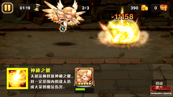 天怒法师在忽视魔抗上尤为出彩,同时四个技能中,有两个技能为暴力输出:大招对敌人造成4波范围伤害;秘法箭对敌人造成4次单体攻击;震荡光弹对敌人造成范围攻击并令敌人减速。另外,天怒法师开场即会释放一个上古封印,令一个目标敌人沉默且降低其魔抗,这就意味着,敌方有一成员上场即为弱势状态,我方很可能开场就以5V4的姿态赢在先手。