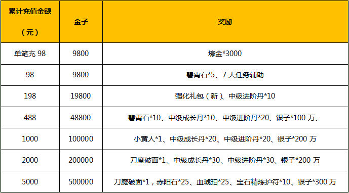 活动奖励:累计充值达到相应额度,即可领取丰厚大礼喔!