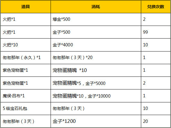 活动规则:活动开启火把限时兑换,使用火把可参与全民点灯获厚礼!