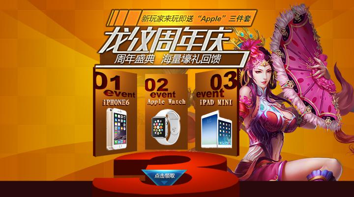 答谢有诚意,回馈不要停,凡是《龙纹三国》玩家均有机会获得N重豪华大礼。免费抽奖得苹果三件套,IPhone6、Apple Watch、IPad Mini、龙纹充电宝等极品奖励统统抽奖即得!