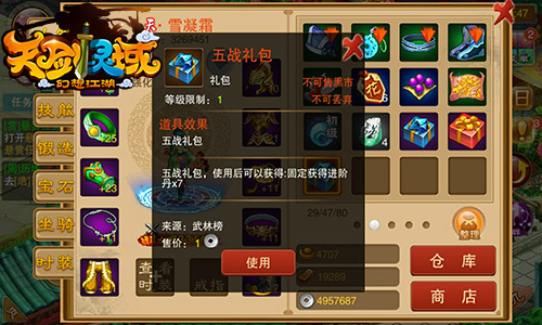 在《天剑灵域》中,每日完成活跃度就会领取不同等级的礼包,礼包内会有不同等级的宝石和各种各样的道具,完成武林榜挑战、悬赏任务、科举考试后也会获得礼包,都属于额外的收获,是玩家最喜欢的玩法。新版本中,玩家只要达到80级,就可以在折扣商城购买礼包,折扣低到超乎想象,简直是史无前例,就是要买买买!任性到极点!