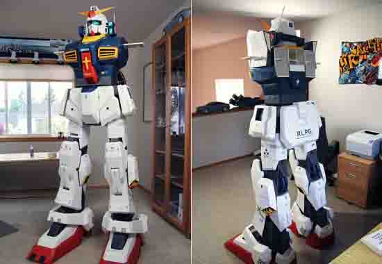 然后重新制作了一个更大的,超过7英尺高的纸艺高达模型。