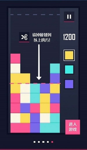 好在在《下方了》瞎晃了几局差点怀疑自己的智商之后,小编终于弄懂了高分攻略,首先在《下方了》中只要色块达成三个连成直线的条件,其他与这三个色块相连的相同色色块也会随之消除,中间段的色块消除之后容易产生连锁反应让其他色块达成相连条件,能够造成二次、三次甚至四次消除。其次是游戏人性化地提供了道具“重新排列”和“剪刀”,重新排列能够刷新右边栏的三块备选方块色,剪刀能剪掉最矮列其上所有的色块。最后即使死亡也不要慌,观看视频或者使用蚂蚁币就能够复活。以上就是小编呕心沥血整理的高分攻略,按这个来,500高分绝对近在眼前。