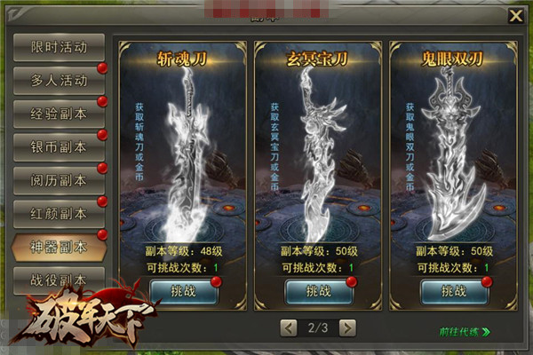 《破军天下》不止是拥有普通的装备,传说级神器也闪亮登场,战场上的骁勇离不开神器的加成,帅气满点,吸引红颜目光不在话下,谁不想成为战场上以一敌百的战神,这神器值得拥有一件,甚至更多。就如同历史上的英雄们拥有独家绝学,神器也能帮你做到,真实三国有的破军都有,甚至更多精彩等你体验。