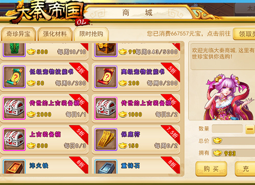 新玩家在游戏前期由于升级很快,往往会出现装备满足不了当前等级需求的情况,现在,这些问题就要一去不复返啦!我们《大秦帝国OL》即将在商城中推出一些适合低等级玩家的基本装备,让你在追赶大部队的道路上更加轻松!这些基本装备属性不固定,可以依照玩家喜好自由加点,可以快速武装各位玩家的新号。