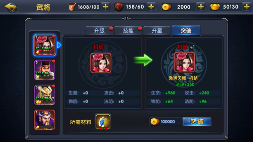 武将突破可以大幅度提升武将能力,还会新开启一个天赋效果。天赋效果可以影响武将的走向,所以,及时突破武将,可是必须的。