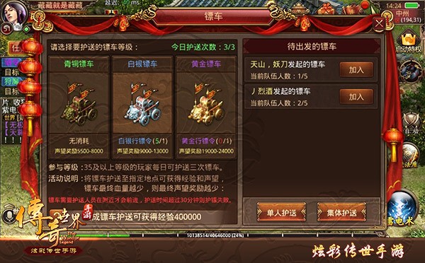 技巧护镖赢奖励 《传奇世界手游》日常任务不可
